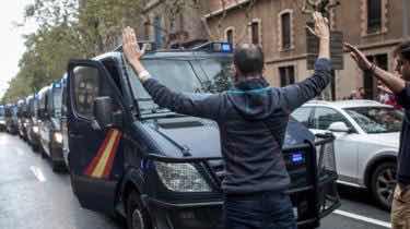 西班牙自治地区加泰隆尼亚周日举行独立公投,西班牙中央政府力阻,派出大量警力前往票站阻止民众投票并试图扣押票箱,加泰民众则守在票站外阻止,警方使用橡胶子弹驱散,双方爆发冲突。