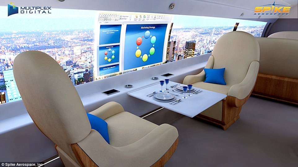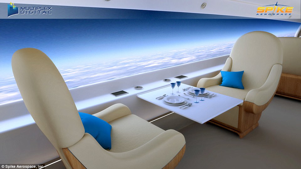 这架最新型飞机被称为S-512,有一个新的“混合翼”和带有巨型显示屏的舱壁,可以随时播放电影。舱内能容纳22名乘客,巡航达到6200英国,速度为1.6马赫,飞行时间可以节省50%。