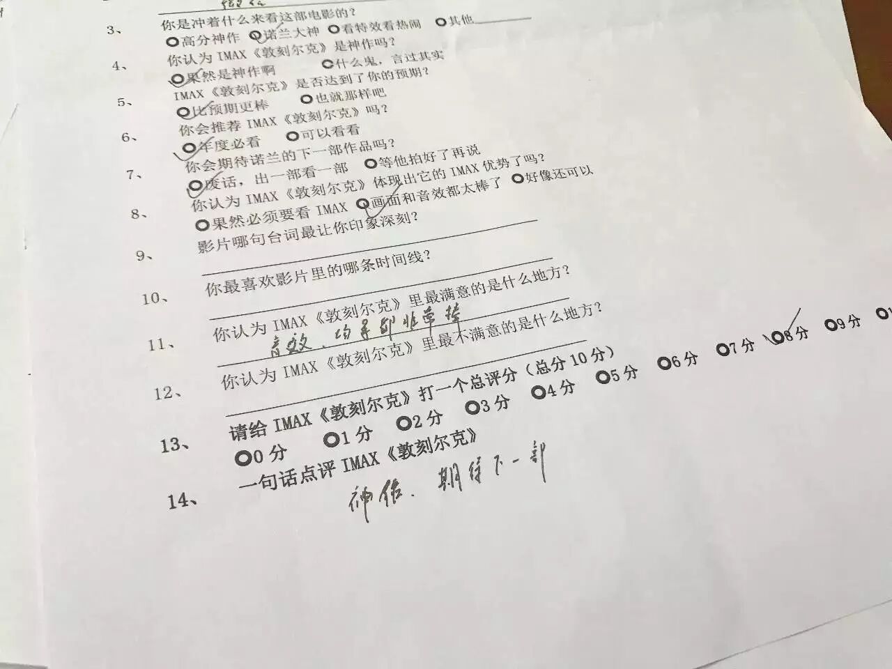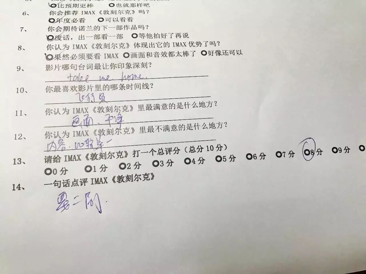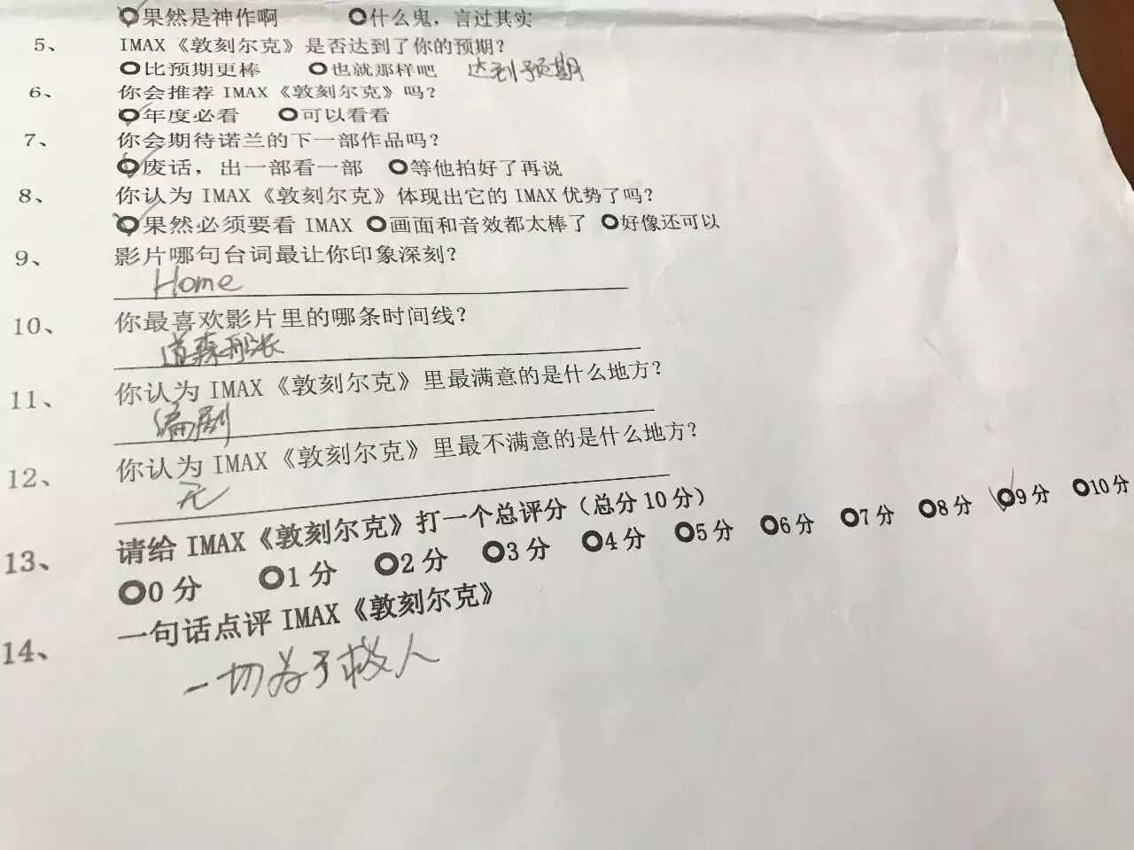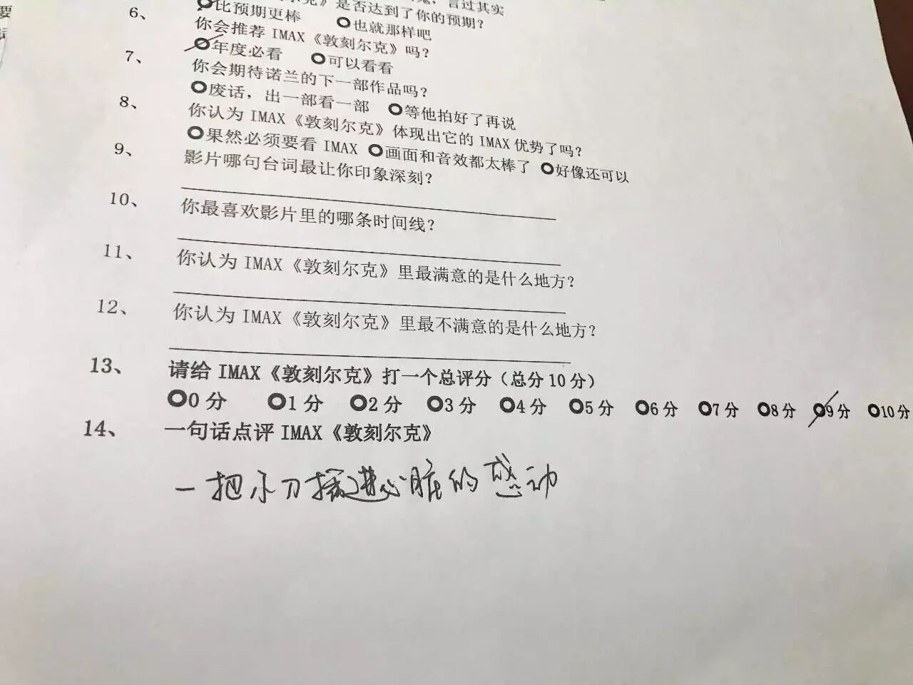 本场的IMAX版《敦刻尔克》平均分为8.6分!昨天刚说过我们观影团分数超过7.2分的都算不错了。8分以上电影属于稀有物种,不常出现。
