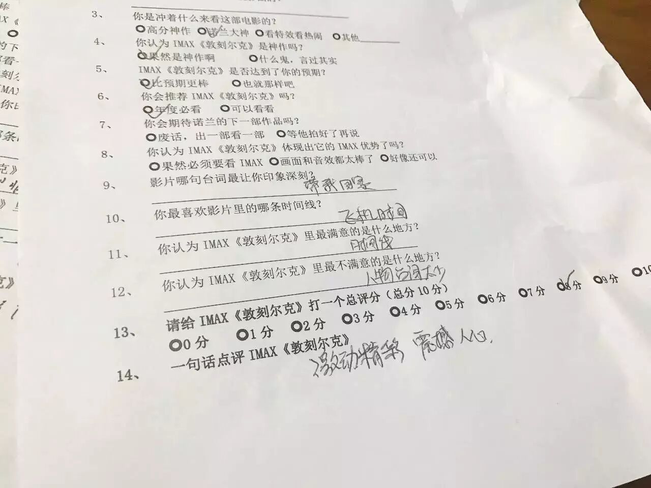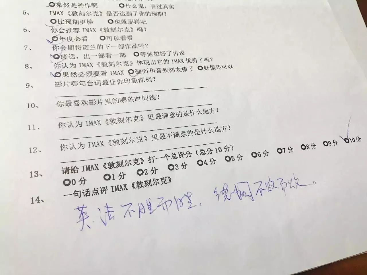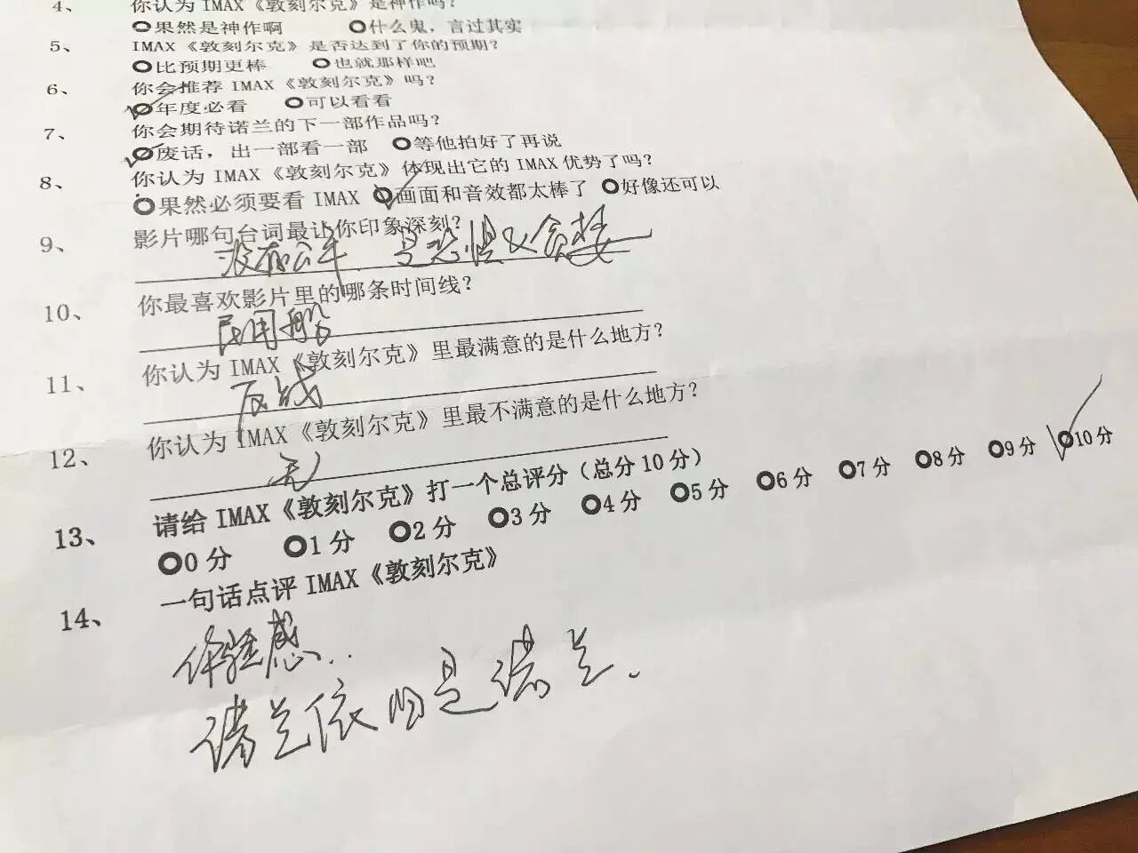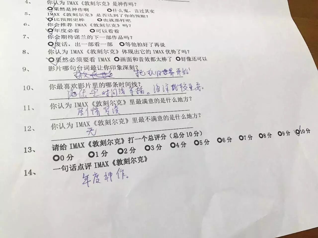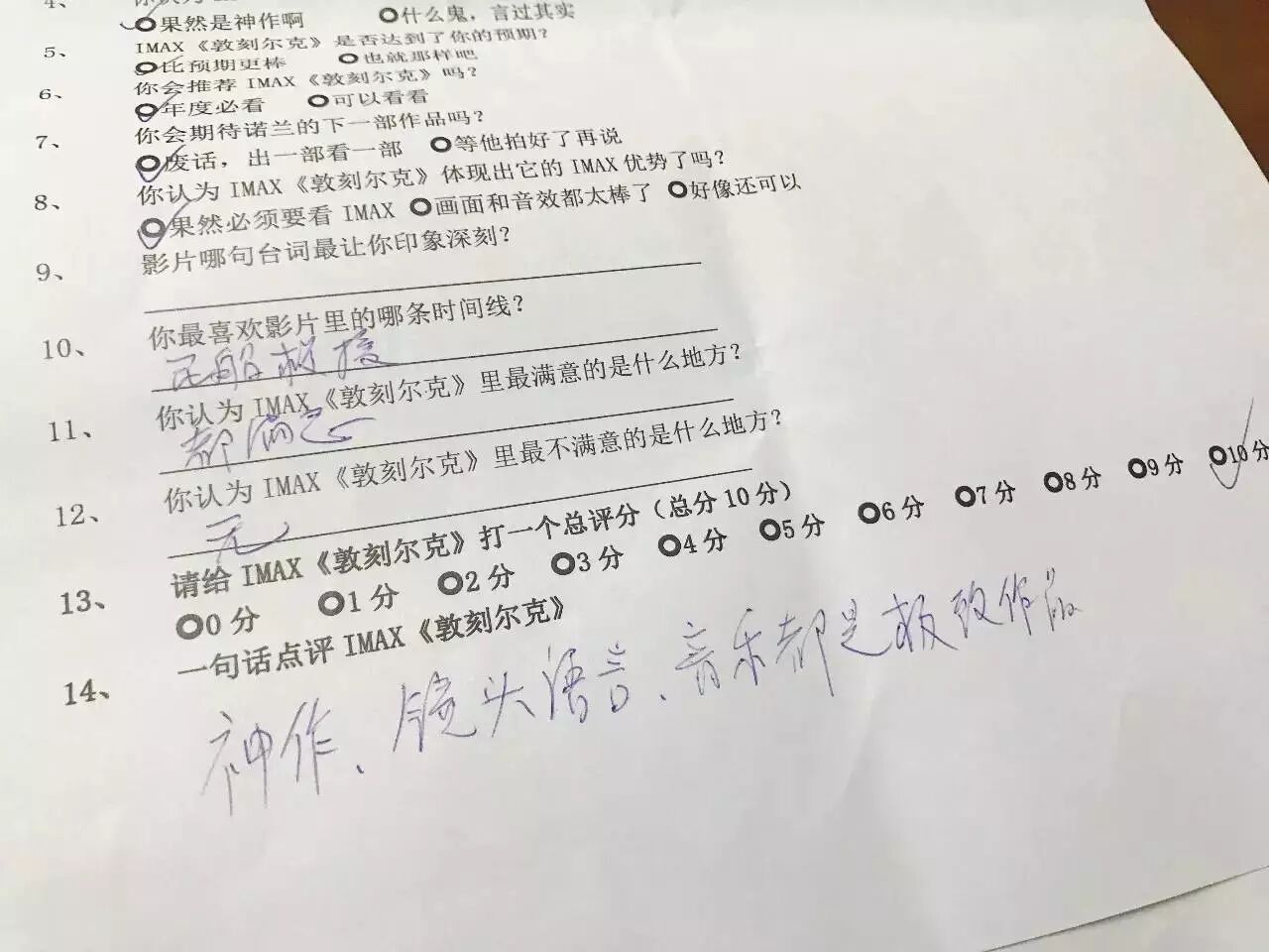 本场的IMAX版《敦刻尔克》平均分为8.6分!昨天刚说过我们观影团分数超过7.2分的都算不错了。8分以上电影属于稀有物种,不常出现。