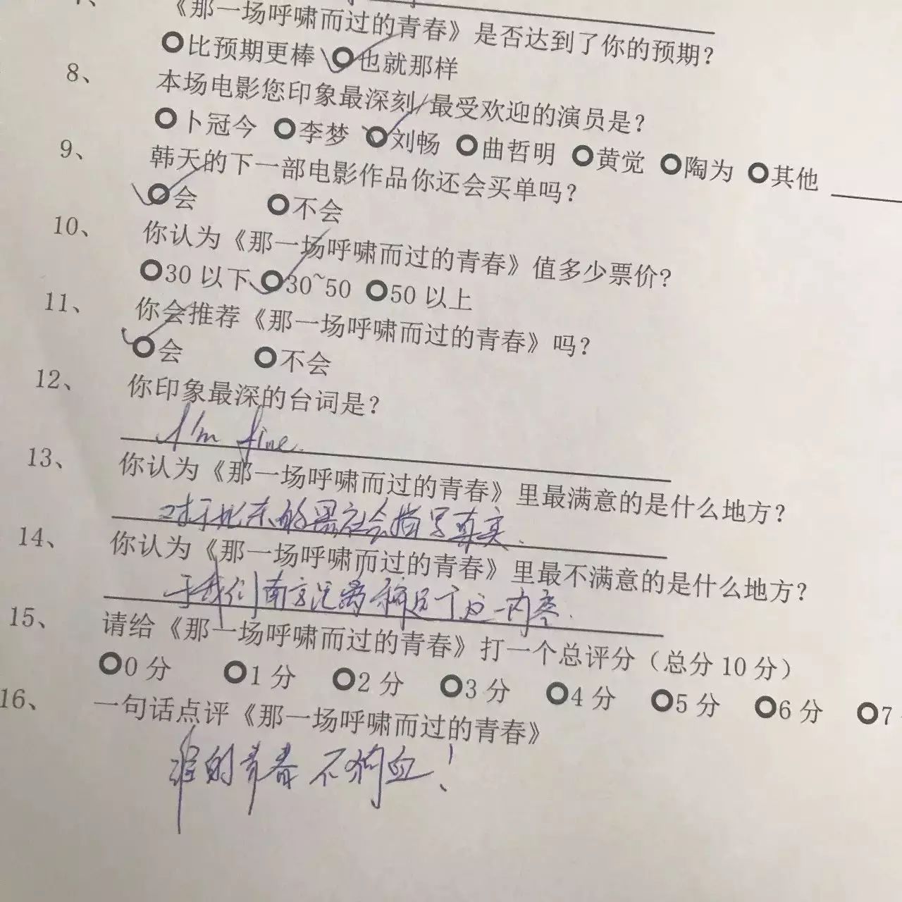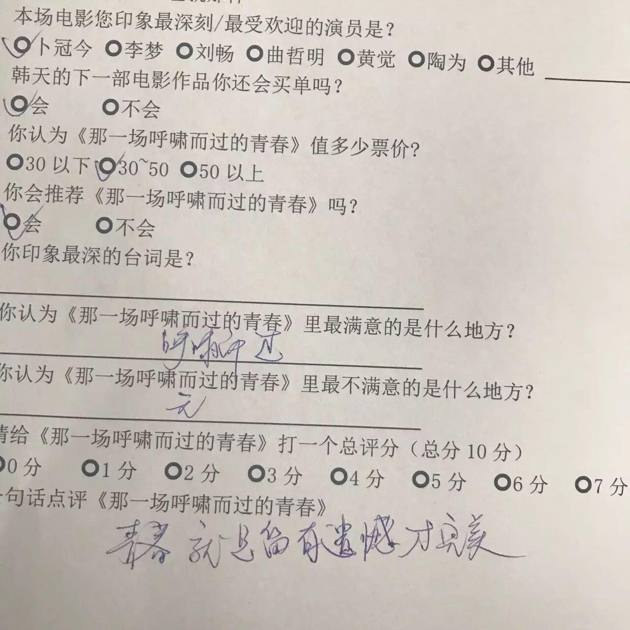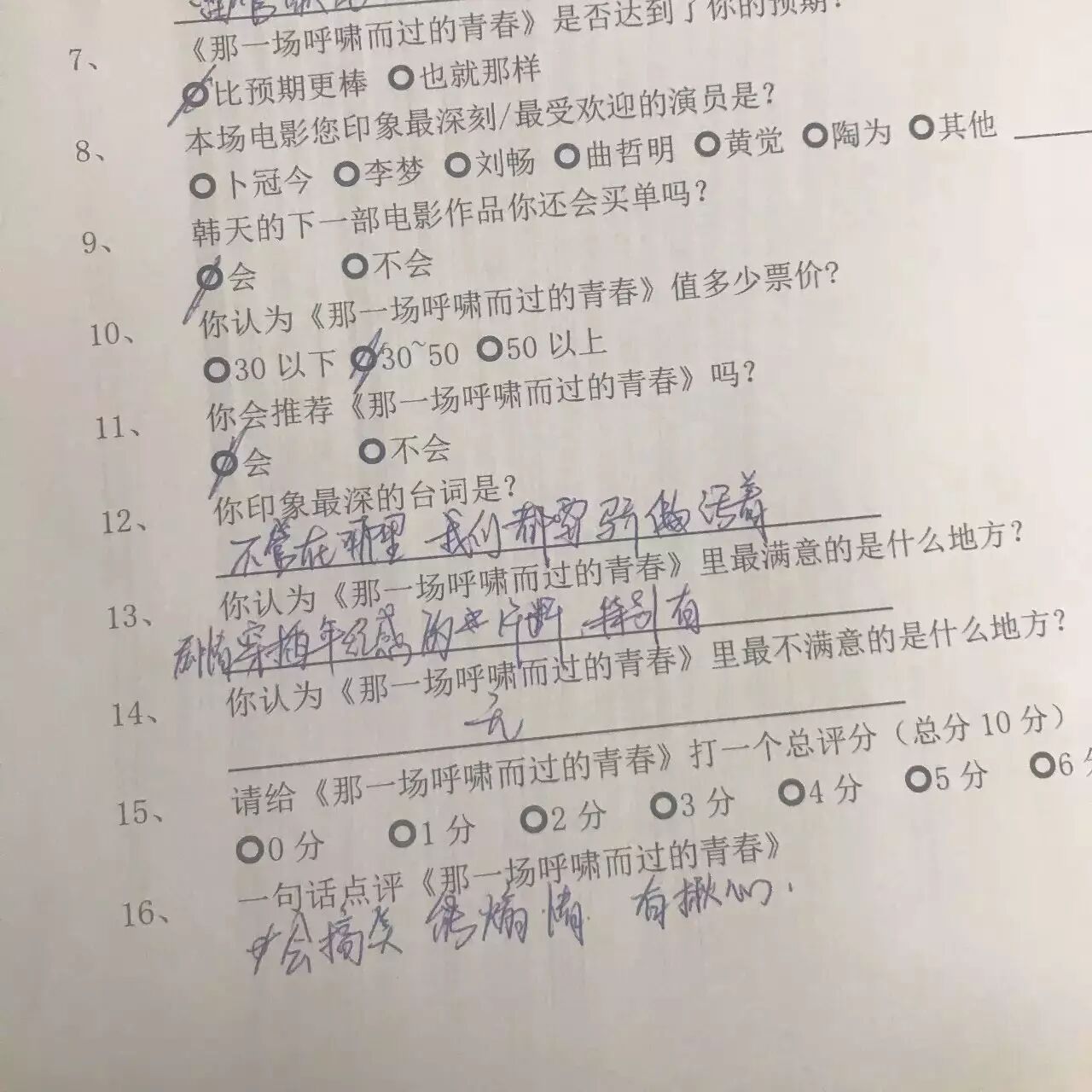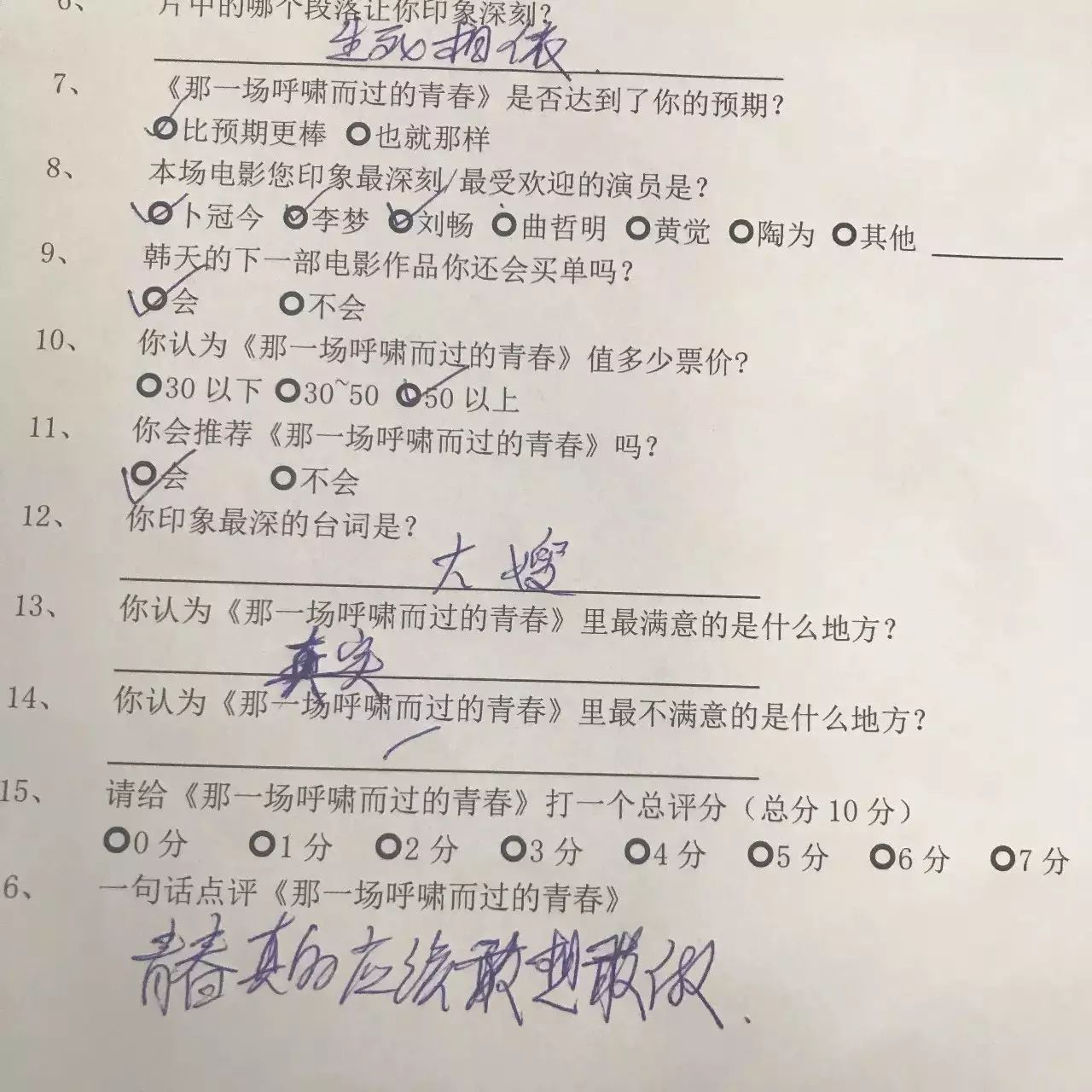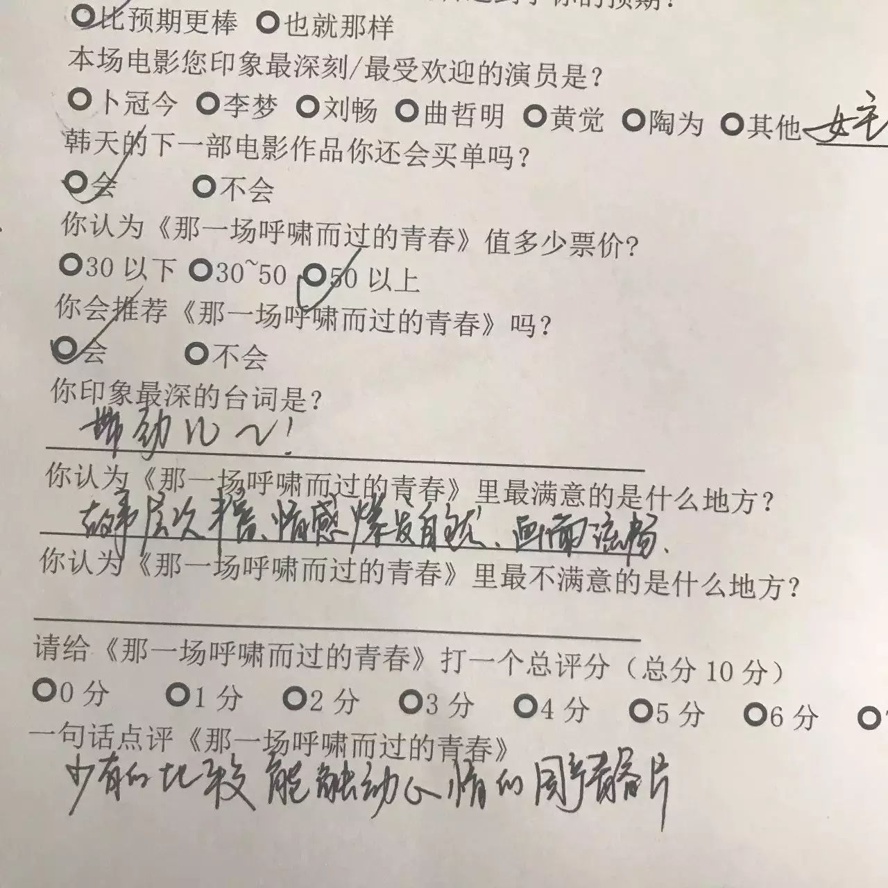 “和《致青春》《匆匆那年》比,《呼啸》是8.5分;和《萨玛莉亚的女孩》、《十三棵泡桐》比,那么是7.5分。我个人很喜欢,也会给朋友推荐。我能深刻体会到导演想要传达给我们的一些深刻的东西。青春过去就是过去了,无论过程的好坏,我们都应该要move on 。”