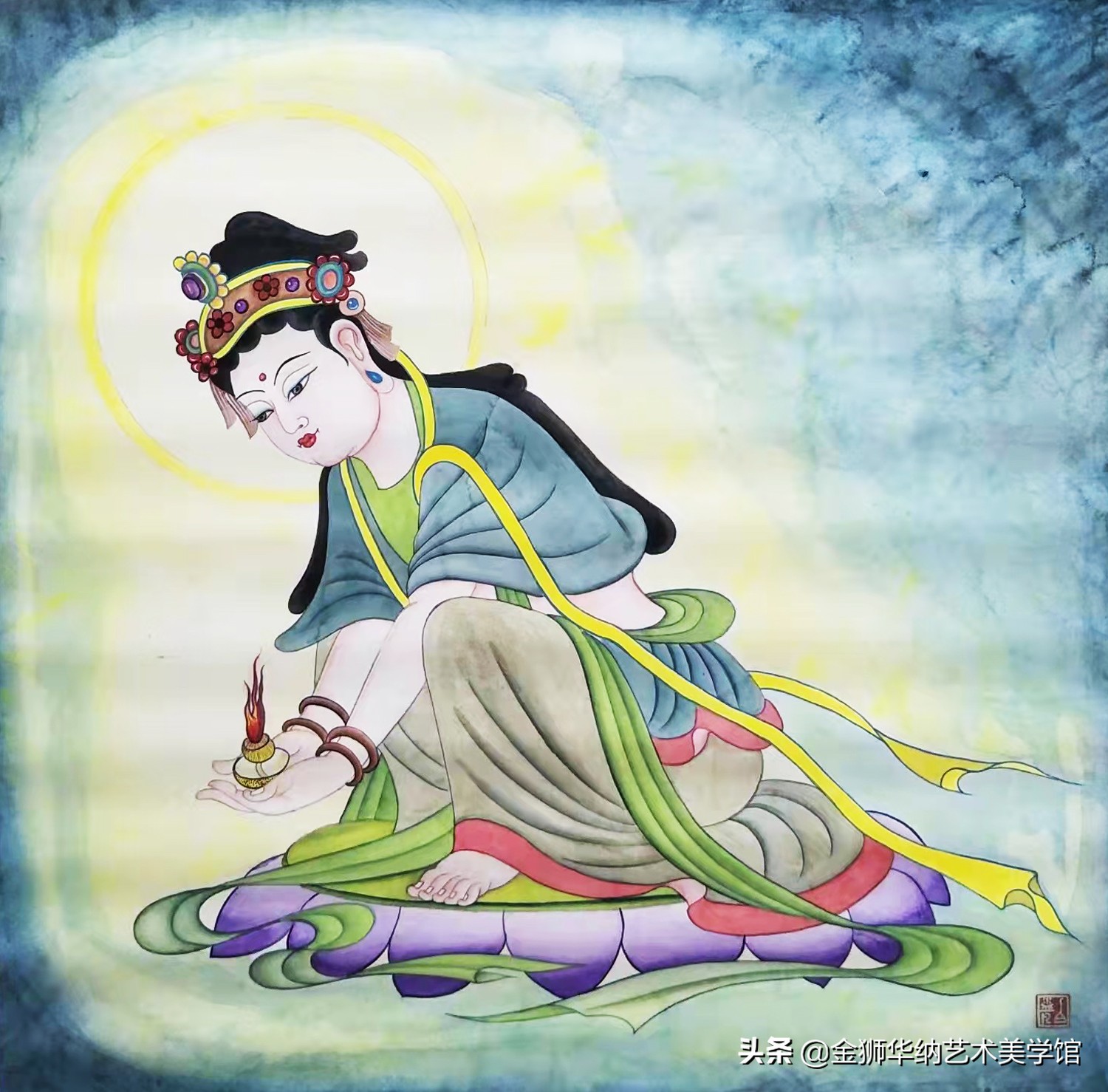 白益凡艺术简介:女,出生于白露时节的美丽西安,小名,雨鑫,道号,六和莲宝。从小喜欢书法和绘画,擅长画佛像和工笔花鸟。多次在陕西美院国画班及中央美院国画班学习、深造。她的画作清新雅气,给人以真实唯美的灵感。她修习佛法,本就是居士,又懂梵文,一直在佛教领域不断探索、精进。现为陕西省美协会员、西安市美协理事、商南佛教协会理事、陕西省佛教协会会员。
