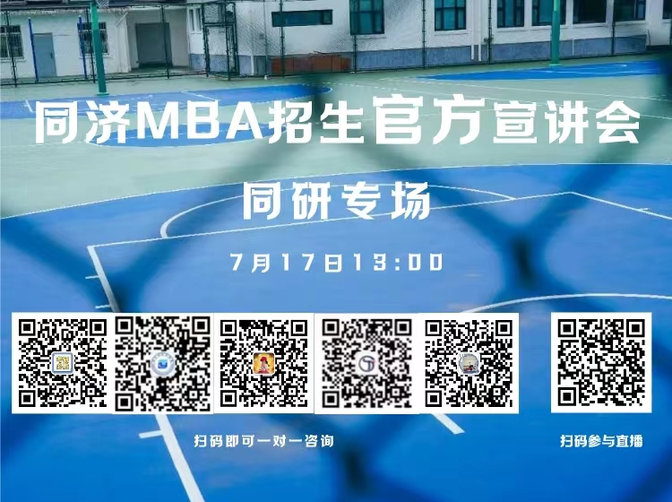 【同济MBA】7月17日(周日)13:00同济MBA招生官方宣讲会同研专场
