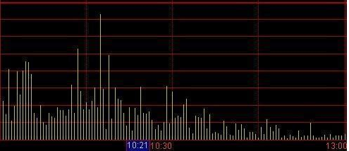 依据上图所讲的,我们再看看这张图。结合上图,如果这只票早上拉升只带量,且分时量形成了堆量状态,那么就更能表明该股主力的操盘意图。而且当股价每个高点都逐步抬高,量峰也依次被创新高时。