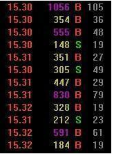 结合上图,当卖档挂出一笔大单,而买档单子比较稀疏且明显少于卖档的时候,这个时间段你一定要跟紧,因为这笔单肯定是大户或主力挂出的单子。