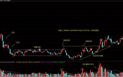主力经过试盘后发现存在不利因素,不得不采取向下整理方式 一方面清理浮筹和缺乏持股信心的散户,另一方面吸引场外资金介入 等待拉升时机,向下打压的幅度和速度不会太大,否则对主力不利。下倾式整理分为:三角形整理、楔形整理、旗形整理等等。