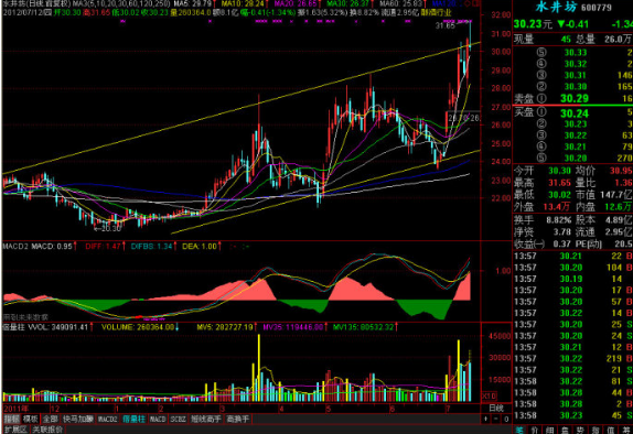 不同的股票上涨所依托的均线并不一致,比如水井坊是典型的依托10均线上涨的股票,但前期金改牛股浙江东日便是典型依托5日均线上涨的,当然还有依托30日和60日的。