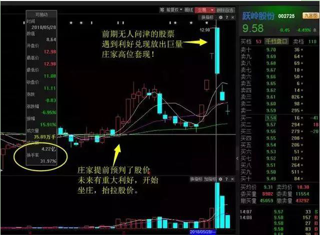 https://p6-tt.byteimg.com/origin/pgc-image/RbcO8S232WyFpp?from=pc相对高位成交量突然放大,主力派发的意愿一般很明显的,然而,在高位放出量来也不是容易的事儿,一般伴随有一些利好出台时,才会放出成交量,主力才能顺利完成派发,这种例子是很多的。
