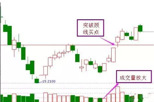 当大盘和个股经历了长时间的下跌之后,出现企稳的迹象,在K线图形上会形成双重底的形态,而右侧出现成交量放大,这个时候一旦突破颈线位置,就是我们大胆抄底的时候。