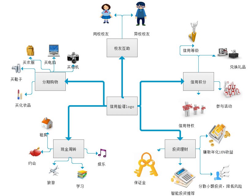 信用,是商业社会不可或缺的“身份证”。打造一个专业、可靠的借贷理财平台的同时,速溶360希望可以通过“信用脸谱”,增强学生的诚信意识,养成良好的信用品质。