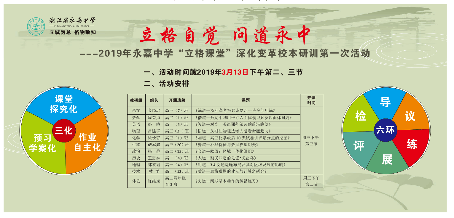 立格自觉问道永中---永嘉中学将举行2019年“立格课堂”深化变革校本研训活动