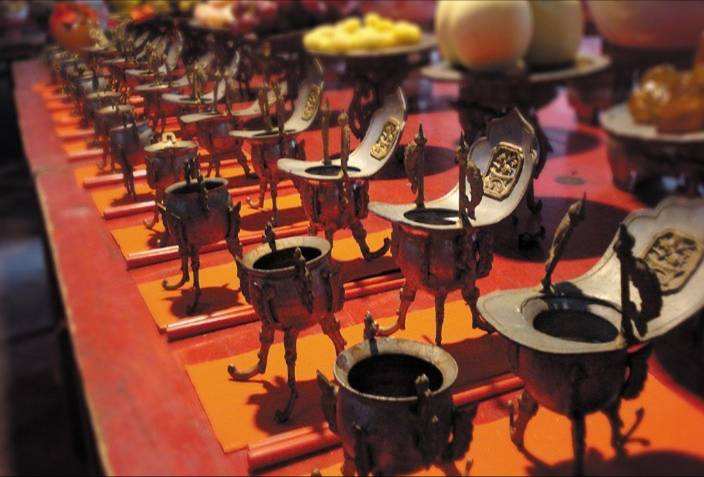 除了"茶宴",在泰山还盛行一种"茶祭"。古人有时祭祀天地神佛,有时也以茶代酒,称之为"茶祭"。在北宋王朝时期,大宋的君臣就曾以茶为祭品,来祭祀泰山的白龙神。在古代信仰中,白龙居泰山西麓傲徕峰下的白龙池中,是掌管一方雨泽的降雨之神。而在民间则流传着一段白龙入赘的故事:"古传白龙化为美丈夫,为岱南一田家佣,复赘为婿。"(明宋焘《泰山纪事》卷三)可能是白龙招赘人间,在世间生活久了,喜欢上了人间的茶饮,因此人们往往在池畔烹茶煮茗,以享白龙。至今白龙池上还有一段宋人题刻,写到:"回自百丈泉,烹茶鼓琴,以终清兴。"写出了白龙池上弹琴煮茶,与龙神共欢的景象。不仅民间如此,宋朝还曾在白龙池上举行过一次官方"茶祭白龙"的大礼: