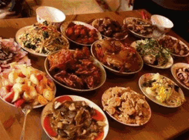 不是强调,也不为过,这年饭不仅丰富,同时也很重要:所以不能吃得太快,每样菜最都要吃一口,意为吉祥;吃时间越长越好,预示长长久久;桌上全鸡象征全家福,只能动筷意思意思;鱼不能吃留着新年,寓意富裕年年有余,等等。