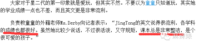 “据童童的同学爆料,有一回她跑到操场中间时,突然被另一个高年级的同学撞倒,整个人跌坐在地上。撞倒童童的同学立刻去安慰她,而童童跌坐在地上呆了数秒后,很快就重现笑容,自己站了起来,继续去找同学玩。童童坚强的性格,与她的母亲的确如出一辙。