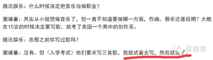 入学考试的时候要写歌,之前也没有写过歌的窦靖童就尝试去写,然后就ok了。有时候天赋这个东西,真的是羡慕不来的。