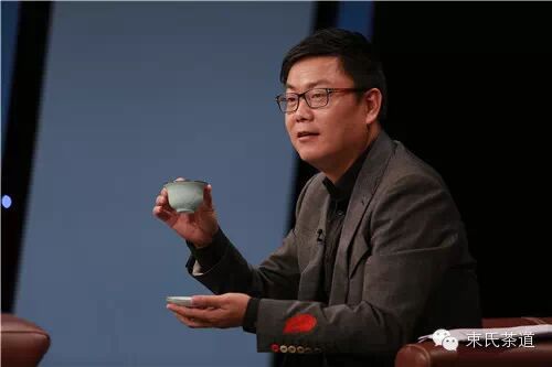 (图:主持人向观众品鉴束氏龙泉青瓷茶器)