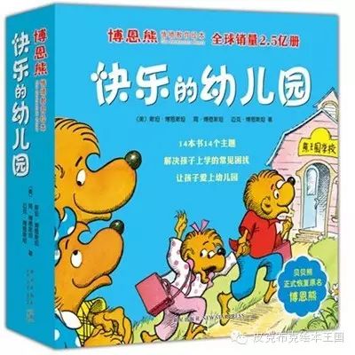 据悉,这次登陆中国的是“博恩熊情境教育绘本系列”第一辑“快乐的幼儿园”中文简体版。该系列的每本书都针对解决儿童在日常生活特别是群体生活中的常见困扰。孩子在故事中找到了认同、心理支持和解决办法。而熊妈妈和熊爸爸的言行和做法,也是父母们充沛的教育智慧之源。每天给孩子讲一个博恩熊的故事,让孩子感觉到自己更有力量、更安全、更幸福。