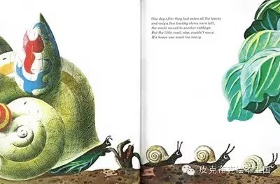 它的房子长啊长啊,其他住在这棵卷心菜上的蜗牛都说:“你的房子确实是世界上最大的房子!”