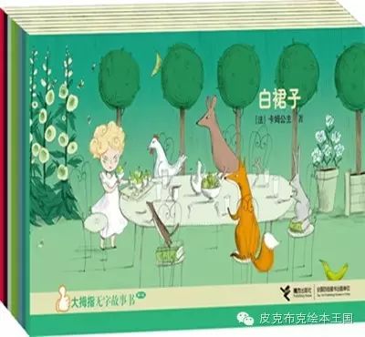 “大拇指无字故事书”也是一套适合年龄段比较宽的无字书系列。由《小鸡和狐狸》、《蒙蒙》《我的狮子》《长长的路》、《小红鱼》、《樱桃》、《咣当先生》、《十朵小云》等八本组成。该套书不仅故事情节生动有趣,而且水彩画面也很优美。
