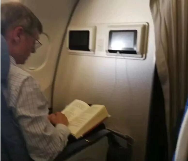 飞机上偶遇比尔•盖茨,坐经济舱全程在看书