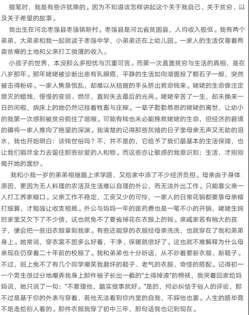 寒门女孩707分考入北大!她写的“感谢贫穷”一文看哭了所有人……