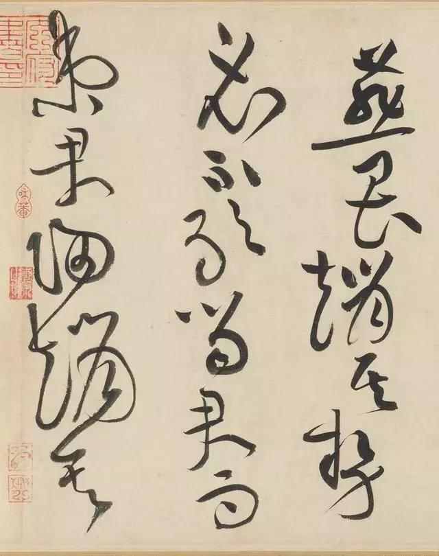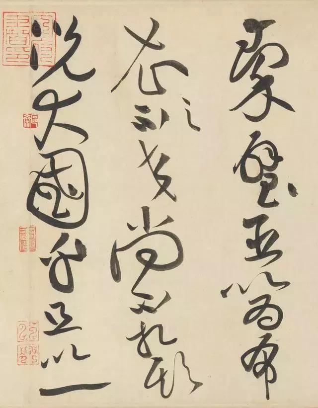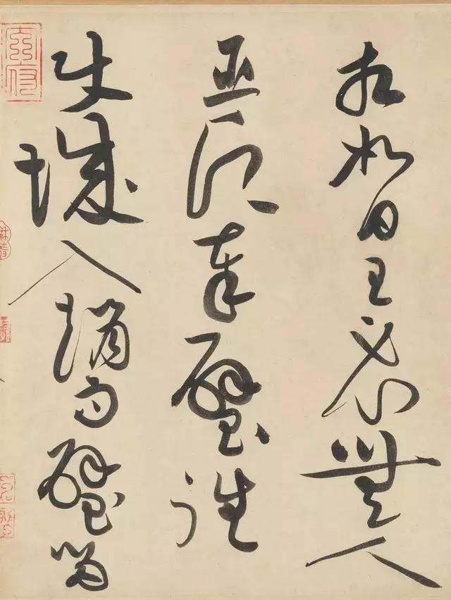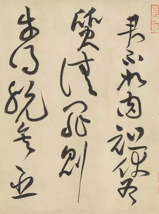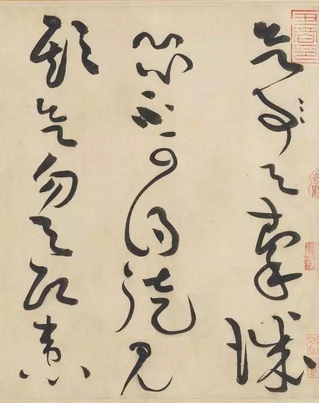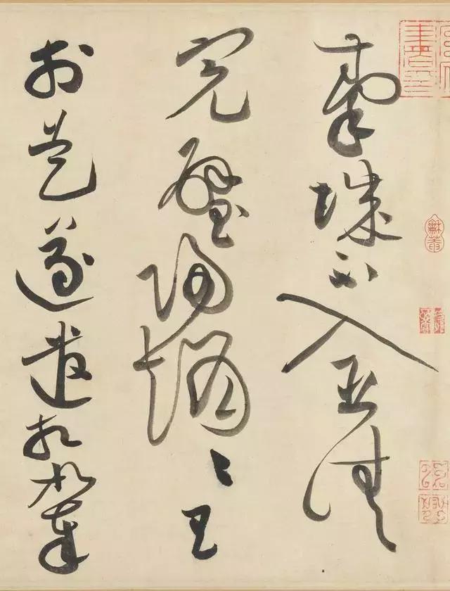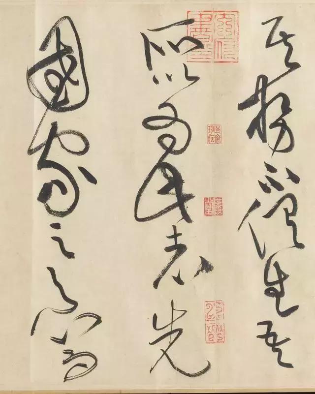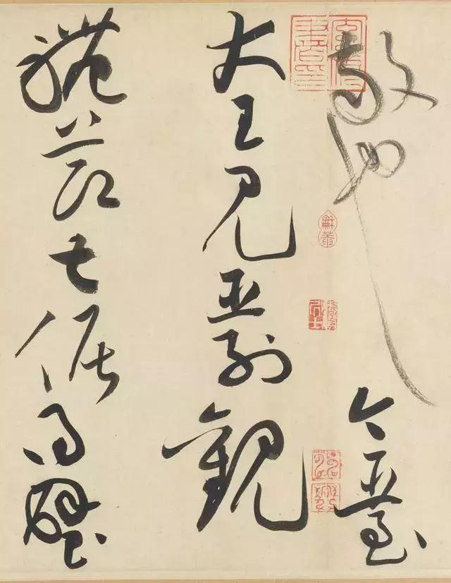 由此可见,黄庭坚能成为上承唐代张旭、怀素,下启明朝祝允明、王铎的关键人物,绝非偶然因素,当属时物造化。点评近代草书,他认为:“近时士大夫罕得古法,但弄笔左右缠绕,遂号为草书可,不知蝌蚪、篆、隶同法同意。数百年来,唯张长史、永州狂僧怀素及余三人悟此法可。”