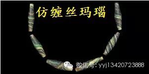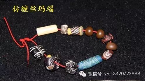 都是仿缠丝玛瑙的琉璃珠,新货又是印度尼西亚产的,老货是甘肃酒泉沙漠里出的(相当于中国汉朝)。
