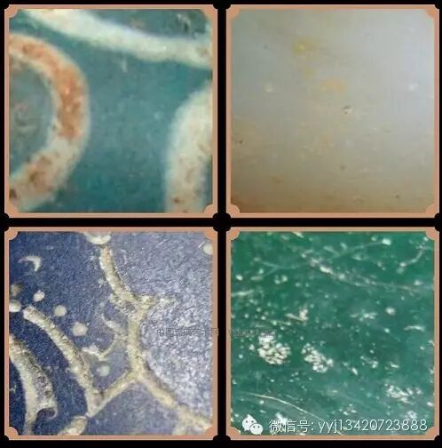 一、钙化皮(桑托按:常见于保存状态较差的琉璃陪葬品,如琉璃八刀蝉)