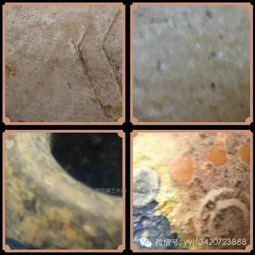 七、类陶皮(桑托按:钙化皮的一种特殊形式,常见于质地比较差的琉璃,在国产高古琉璃中特别常见,特别是一些早期蜻蜓眼)