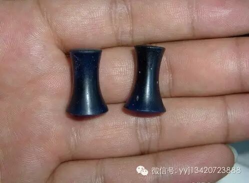 关于形,再举一个例子。我们都知道老琉璃会有七彩皮和钙化层,但是有一些老琉璃却真的什么都没有。比如下面这个耳珰,只有少量的钙化,第一眼你会不会觉得这个是中古甚至近代的产品呢?