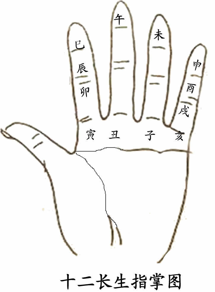 假如火长生在寅,从寅上起,顺行,卯上沐浴,辰上冠带,依次顺行;木长生在亥,从亥上起。余可类推。