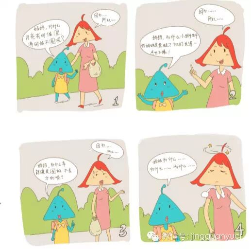 漫画里,孩子问了妈妈各种为什么。一开始,妈妈会很耐心地讲解。但是到后面,妈妈直接烦了,不愿意言语。相信每位妈妈都经历过这样的一个阶段。孩子为什么会有那么多的“为什么”?不同的情况下,孩子的问题背后,其实有着不同的需求。常见的孩子问为什么,有下面两类: