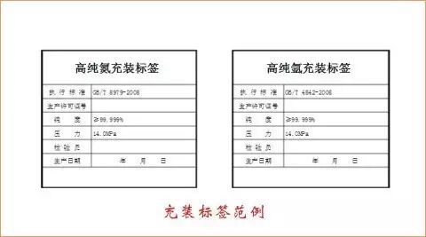 GB16804-2011《气瓶警示标签》明确规定,在气瓶上使用警示标签的目的是推动气瓶及推动气瓶及所装气瓶的标识,并对所装气体有关的主要危险做出警告。警示标签同时提供其他基本信息,例如,用来显示气体或混合气体的名称及分子式,以及附加的警示说明。