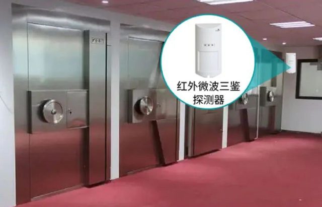 大家都知道银行的金库里面的各类财务以及贵重物品价值大,所以库房的出入口是防范的重中之重,安装三鉴红外探测器,布防状态下,当有人进入库房时,可以立即触发报警,向主机和平台发送警情信息。