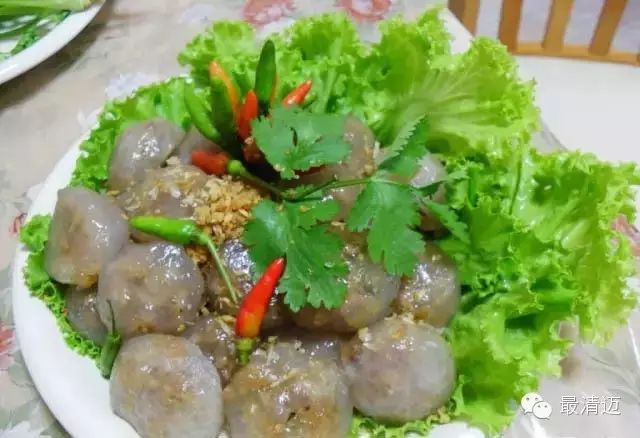 这道小吃不算甜点类,因为他是咸的,但非常受到泰国人喜爱,大街小巷都有在卖。泰式珍珠丸子有着半透明的外皮,内馅包的是猪肉,感觉就像一口吃的台湾”肉丸”,但是因为肉馅内有加萝卜干和碎花生,调味用的有鱼露、大蒜和红葱头,如果爱吃辣的朋友还可以配着朝天椒和干葱头一起吃喔,虽然小小一丸,吃起来却是咸香酥滑一应俱全。泰式珍珠丸子是用沸水加入西谷米里,然后将黏稠的西谷米搓成球状当外皮,把馅料放入后蒸上15分钟就变成晶莹剔透的小丸子啰!