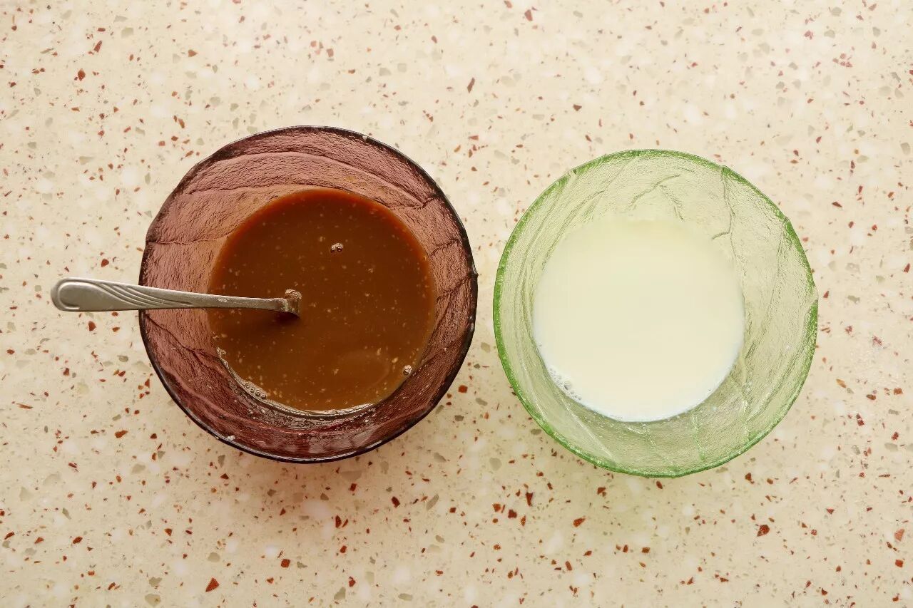 牛奶加之温热,分成2等份