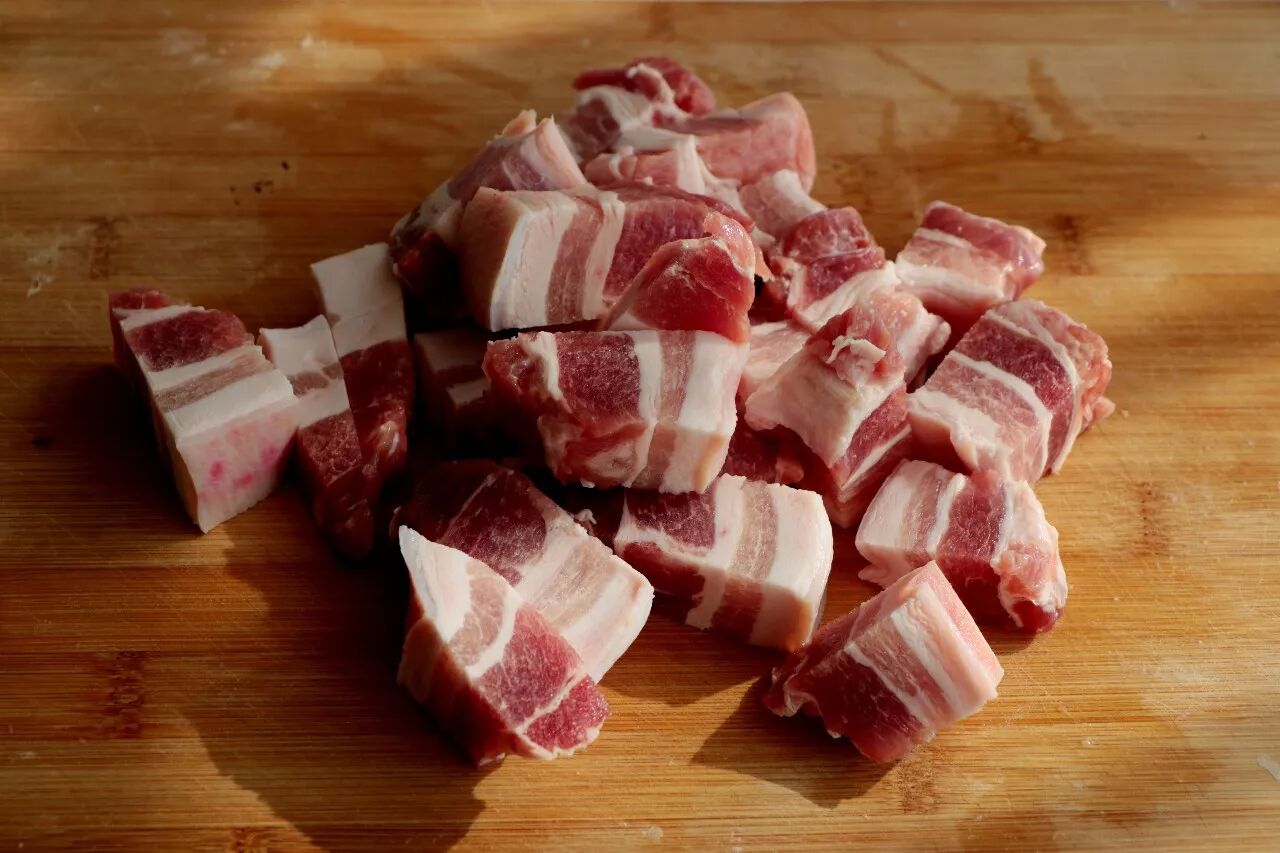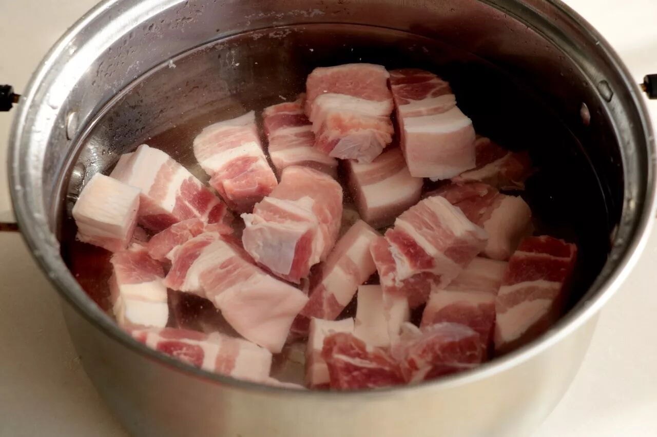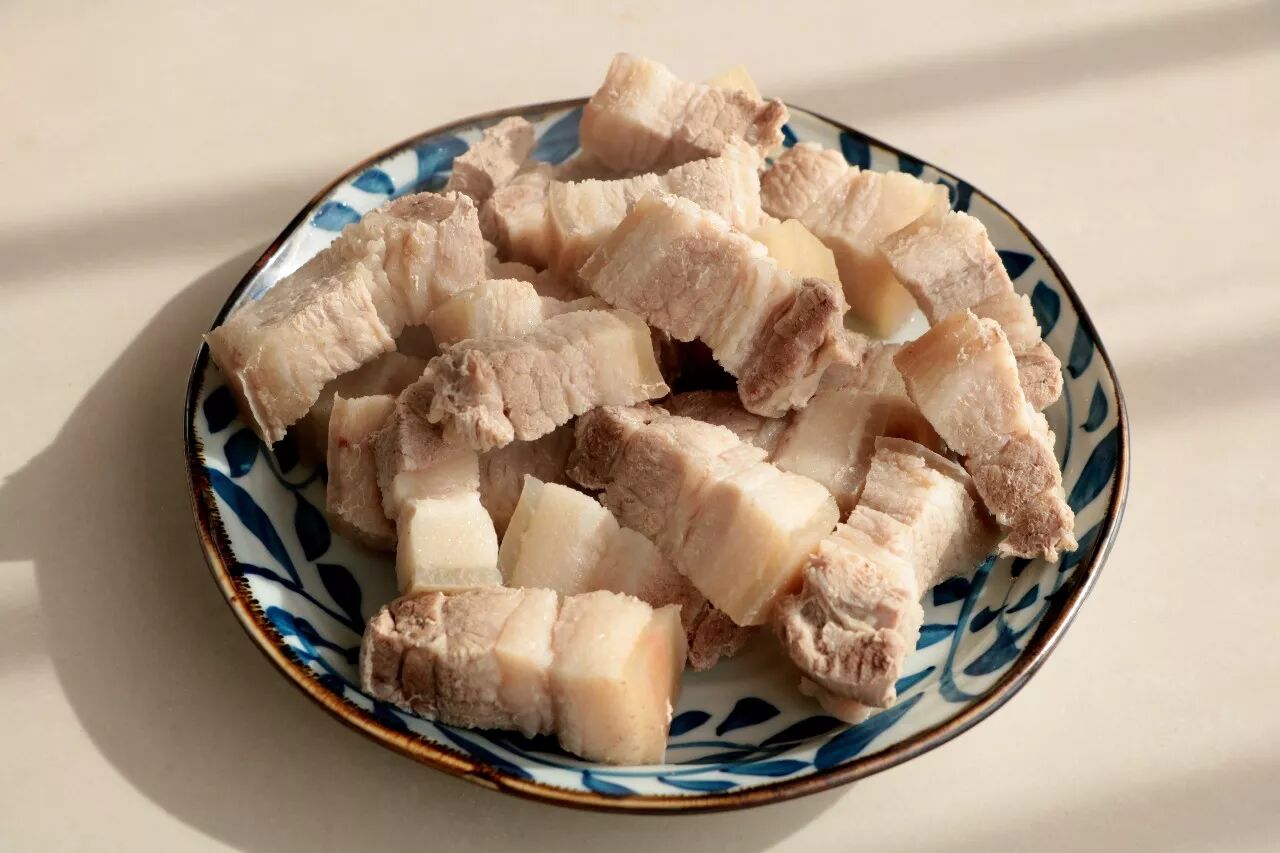 05、捞出的五花肉沥干水分,或是用厨房纸擦去水分;