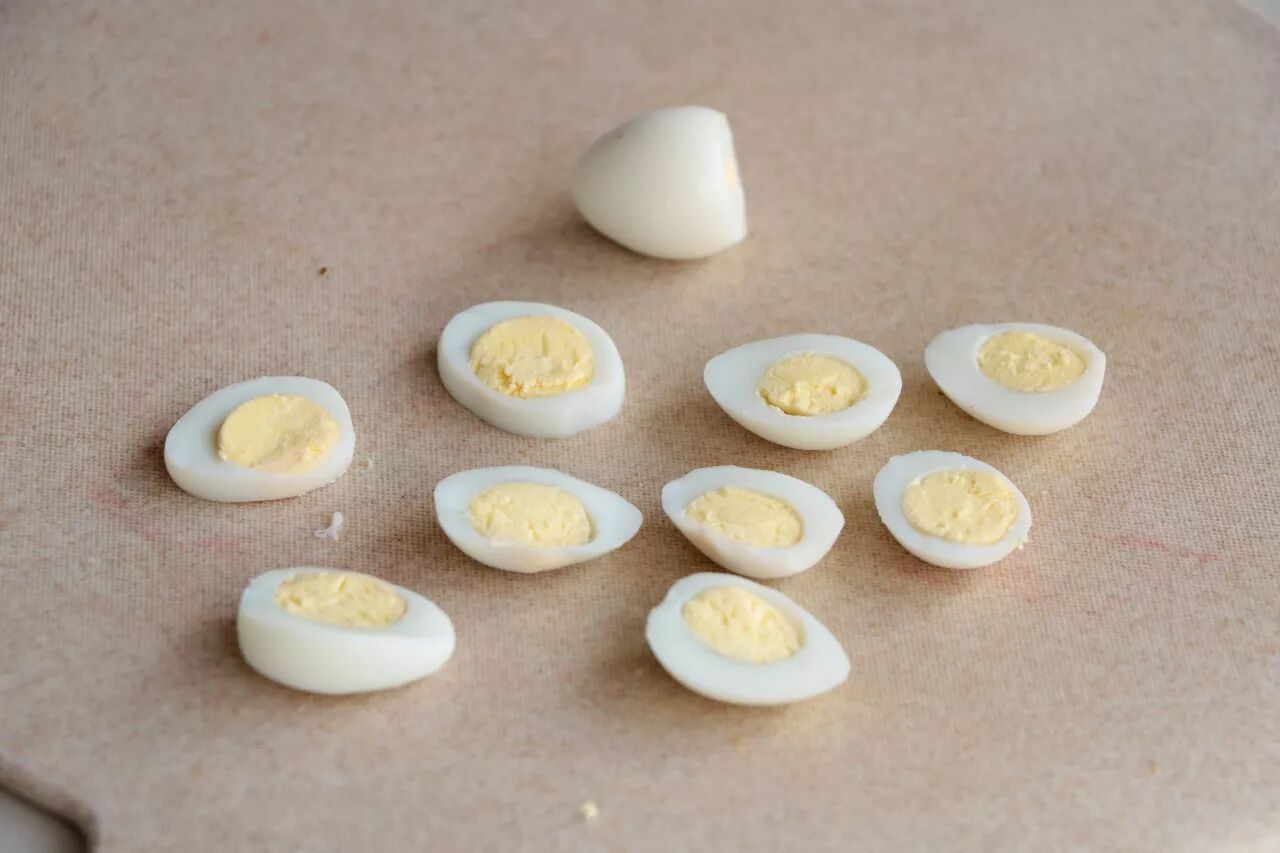 鹌鹑蛋冷水入锅煮几分钟至熟透,切成薄片;