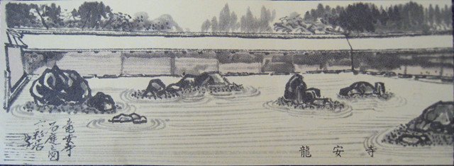 龙安寺里看石庭,一片沙砾,十五块石头,叫作枯山水。明治维新后废佛毁释,龙安寺衰败,直到1975年英国伊丽莎白二世来看了说好,这才变成景点。游客们走累了,正好坐在檐廊边歇脚,看着看着就看出睡意或禅意。