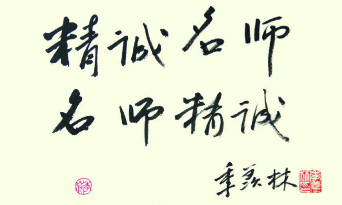 1999年9月,国学大师季羡林为精诚文化学校名师俱乐部成立题词“精诚名师,名师精诚”。