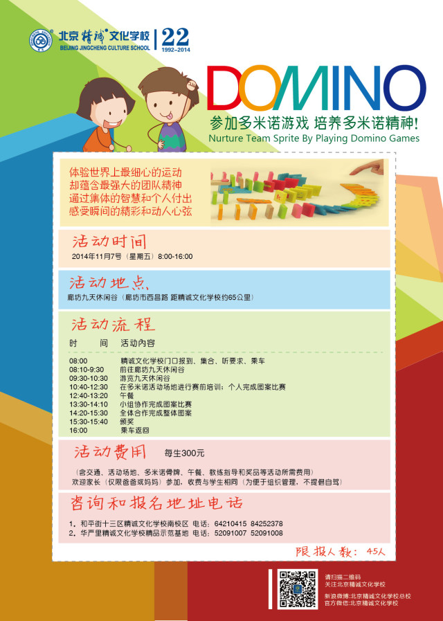 回复“多米诺+学生姓名+家长姓名+联系方式”报名。