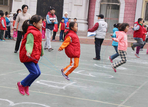 在跳绳比赛现场,呈现了一片欢腾的景象,助威声、呐喊声响彻校园。运动的快乐挂在每一位师生的脸上。比赛选手们也是分秒必争,随着裁判老师的一声哨响,小选手们斗志昂扬,彩绳飞舞,只听见绳子在空中划过的嗖嗖声。在旁边呐喊助威的同学,紧张程度不比场上选手逊色,一声声兴奋的欢呼:加油!加油!跳绳成绩的记录也被不停地刷新。同学们跃动的身影映衬着冬日的暖阳,形成了校园里一道别开生面的美丽风景。