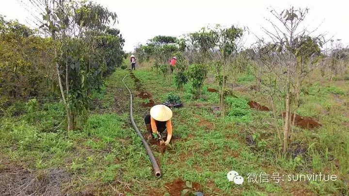 阿波罗咖啡庒园的工作人员利用阳光和煦适合万物生长的好天气,把年初就在温室开始培育好的咖啡小苗悉心的移植到户外的咖啡园中。