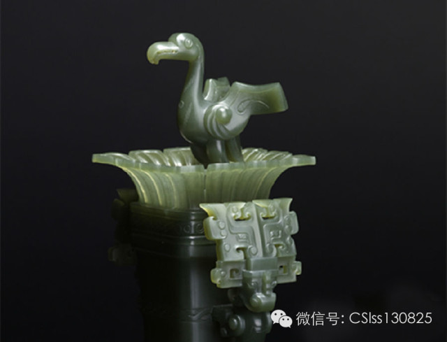 值得一提的是,在殷商、西周朴重庄严、神秘肃穆的基础上,增加了清新轻巧、自由活泼的风格。而浓郁的青铜意味,是海派炉瓶的显著特色。因此,青玉《莲鹤方壶》也可说是海派炉瓶的代表作。