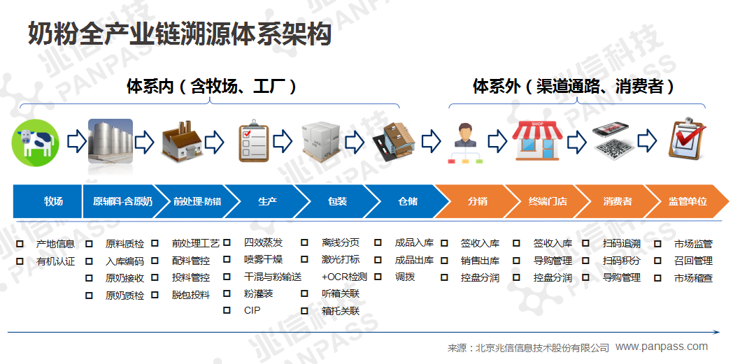 近期又有两家著名奶企伊利、贝因美与兆信科技签约合作,实现奶粉或液态奶的产品数字身份管理。此前兆信科技也为君乐宝、雀巢、天山云牧、辉山乳业等奶企提供奶粉的数字化智能追溯服务,覆盖生产端的赋码、流通管理到营销端的渠道、终端、消费者管理,建立安全追溯平台,实现全流程数字化管理。