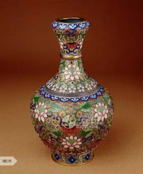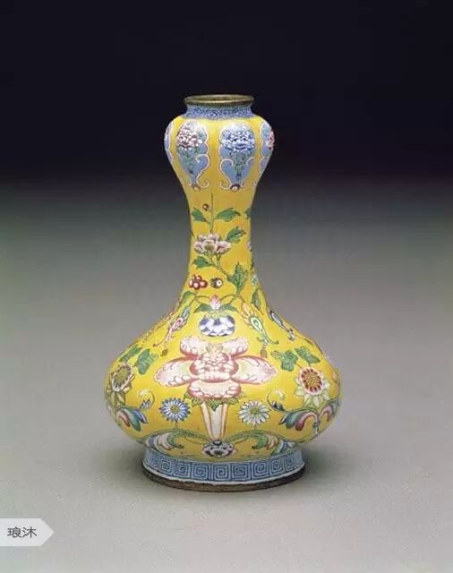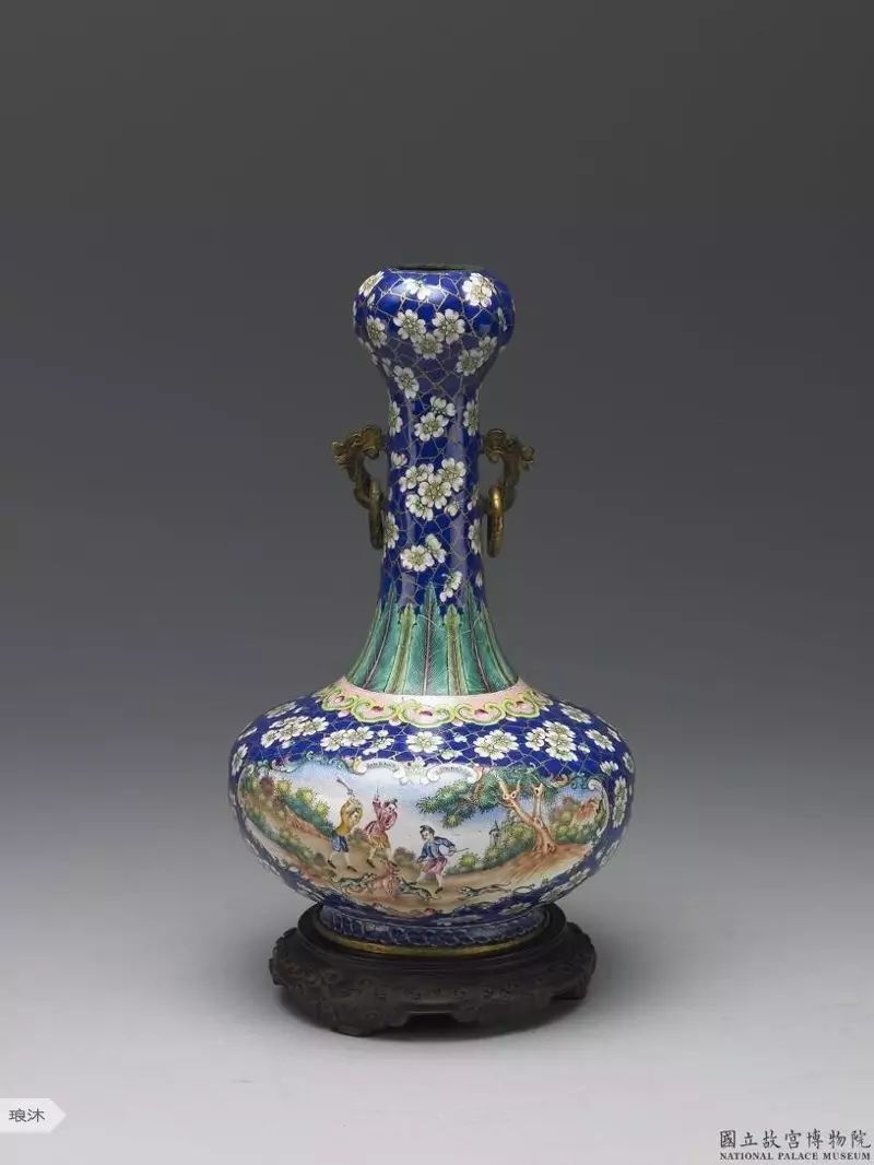 清乾隆款 铜胎画珐琅双耳蒜头瓶