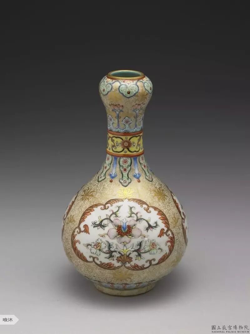 清乾隆 磁胎洋彩玉环蒜头瓶