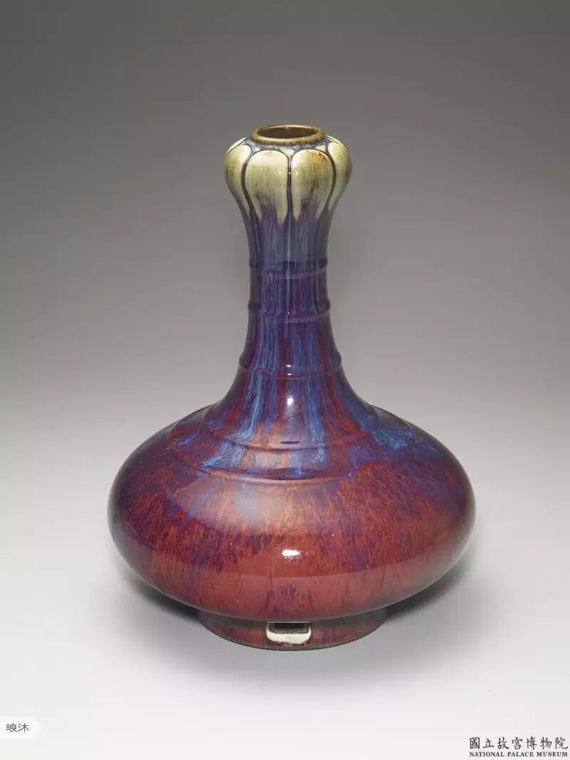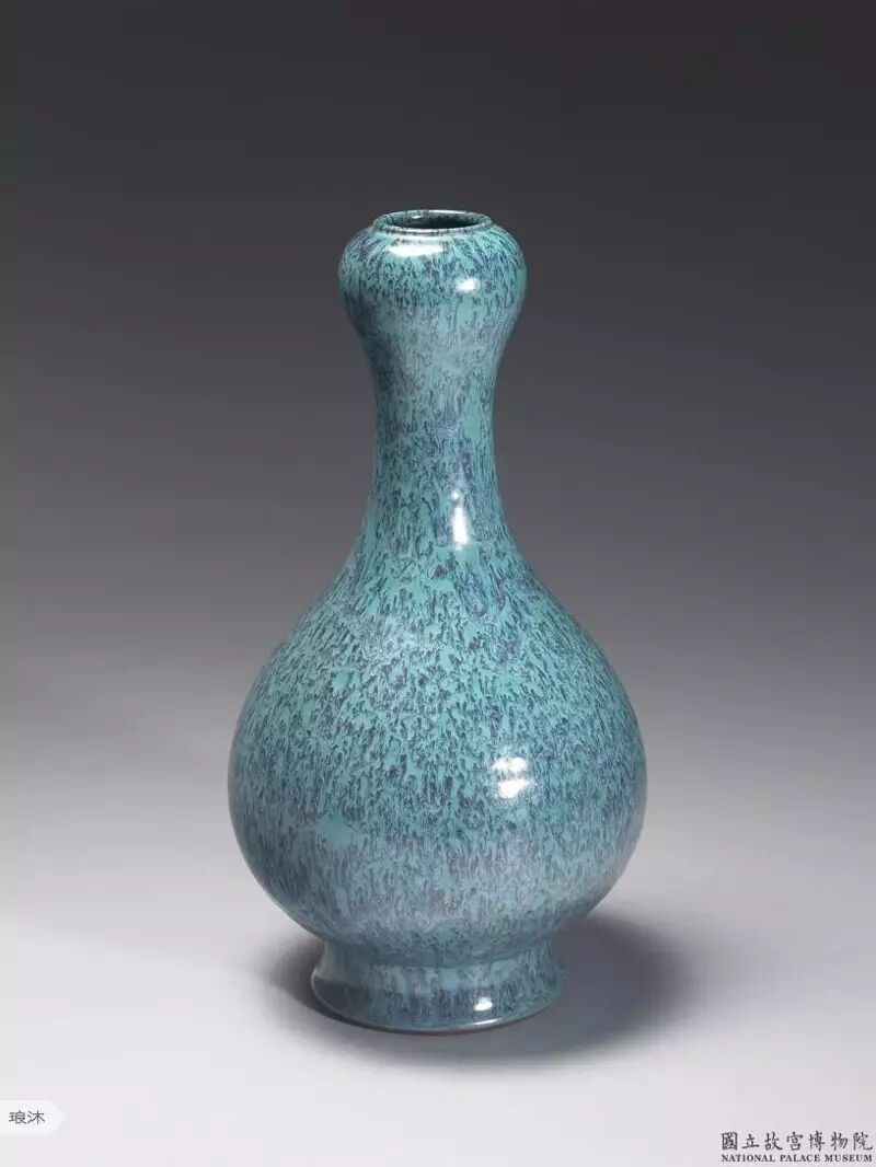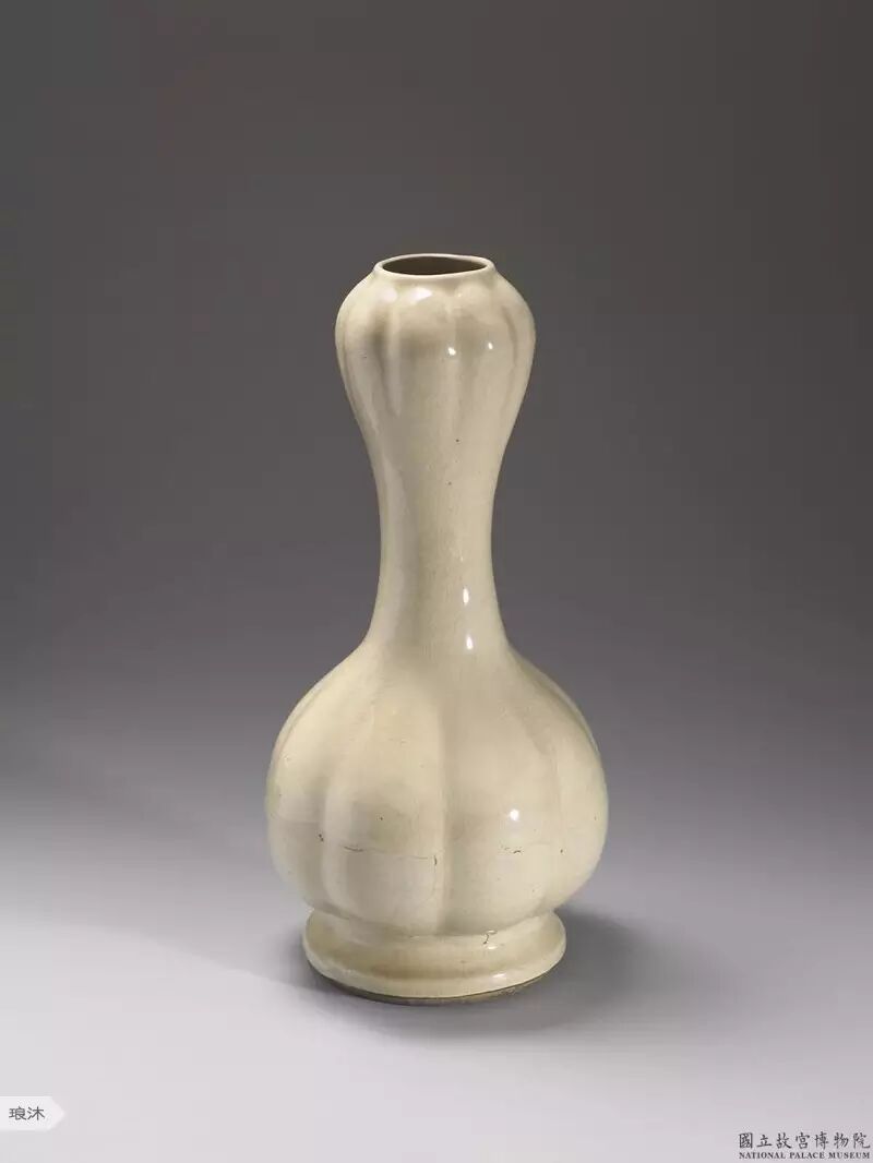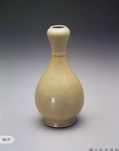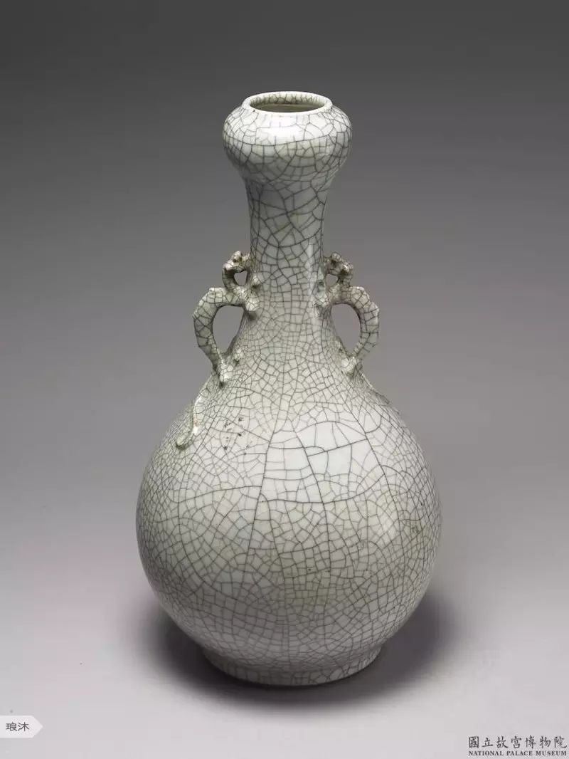 雍正窑 仿南宋官窑月白窑变米色蒜头瓶