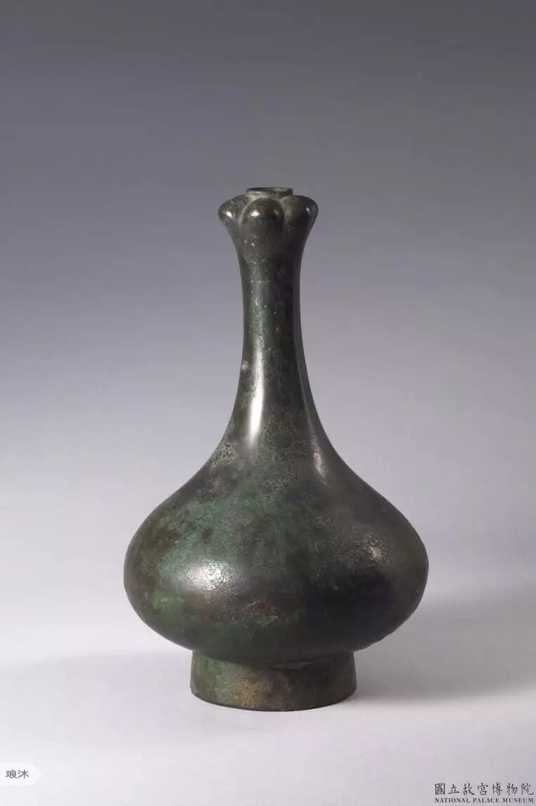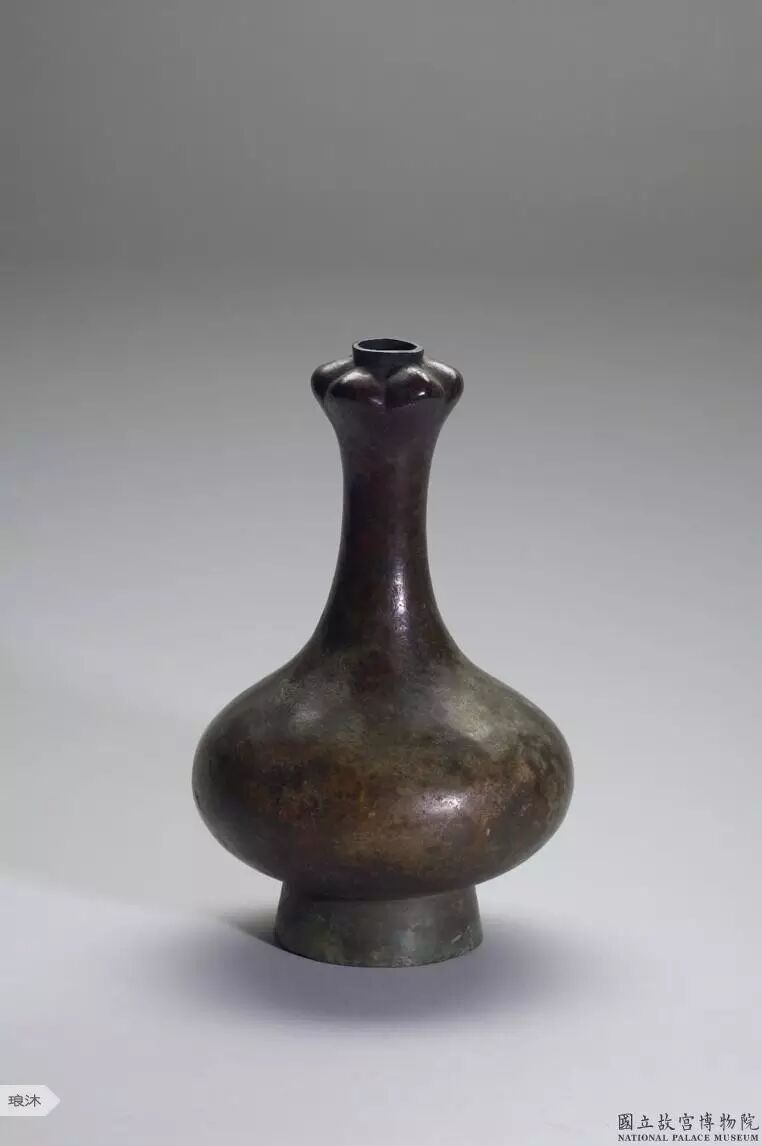 明成化蒜头瓶,仅口部作花瓣状,耳为随意堆塑;