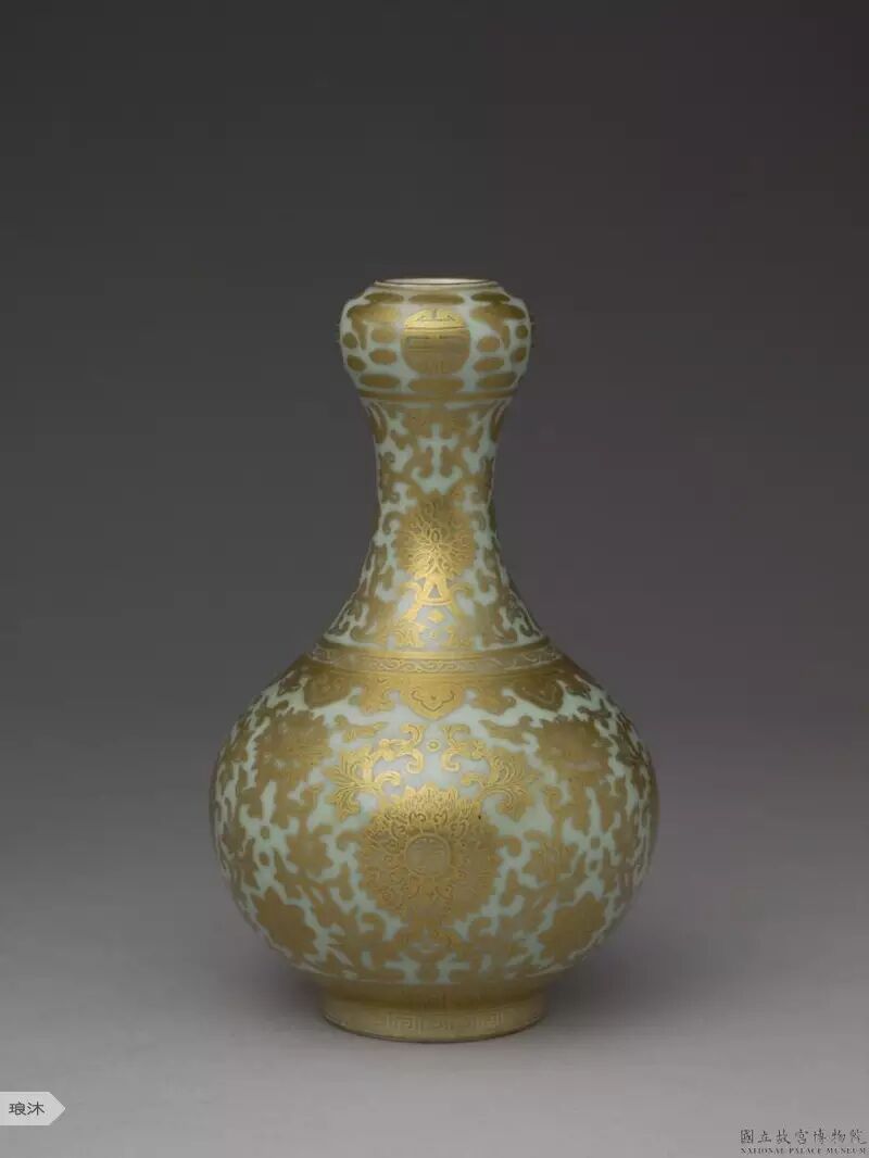 瓷制蒜头瓶始烧于宋代,流行于明清,以景德镇窑制品为多见,品种有青花、五彩、洒蓝描金等。